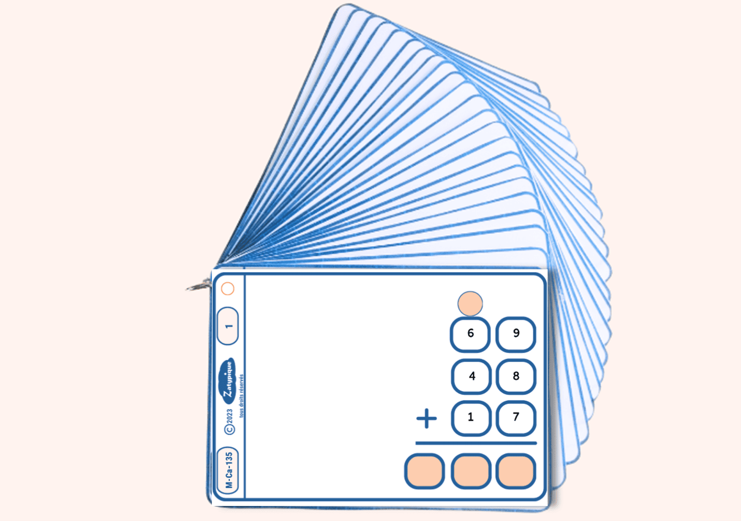 Jeu de fiches plastifiées et reliées par un anneau à clip, à recevoir chez vous. Il contient :